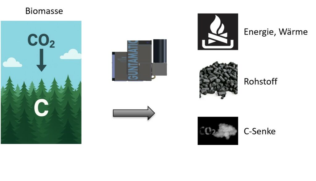 Die Technologie steigert die Energieeffizienz kommunaler Heizsysteme, indem der eingesetzte Brennstoff doppelt wirksam genutzt wird: zur Wärmeerzeugung und zur langfristigen CO₂-Bindung.